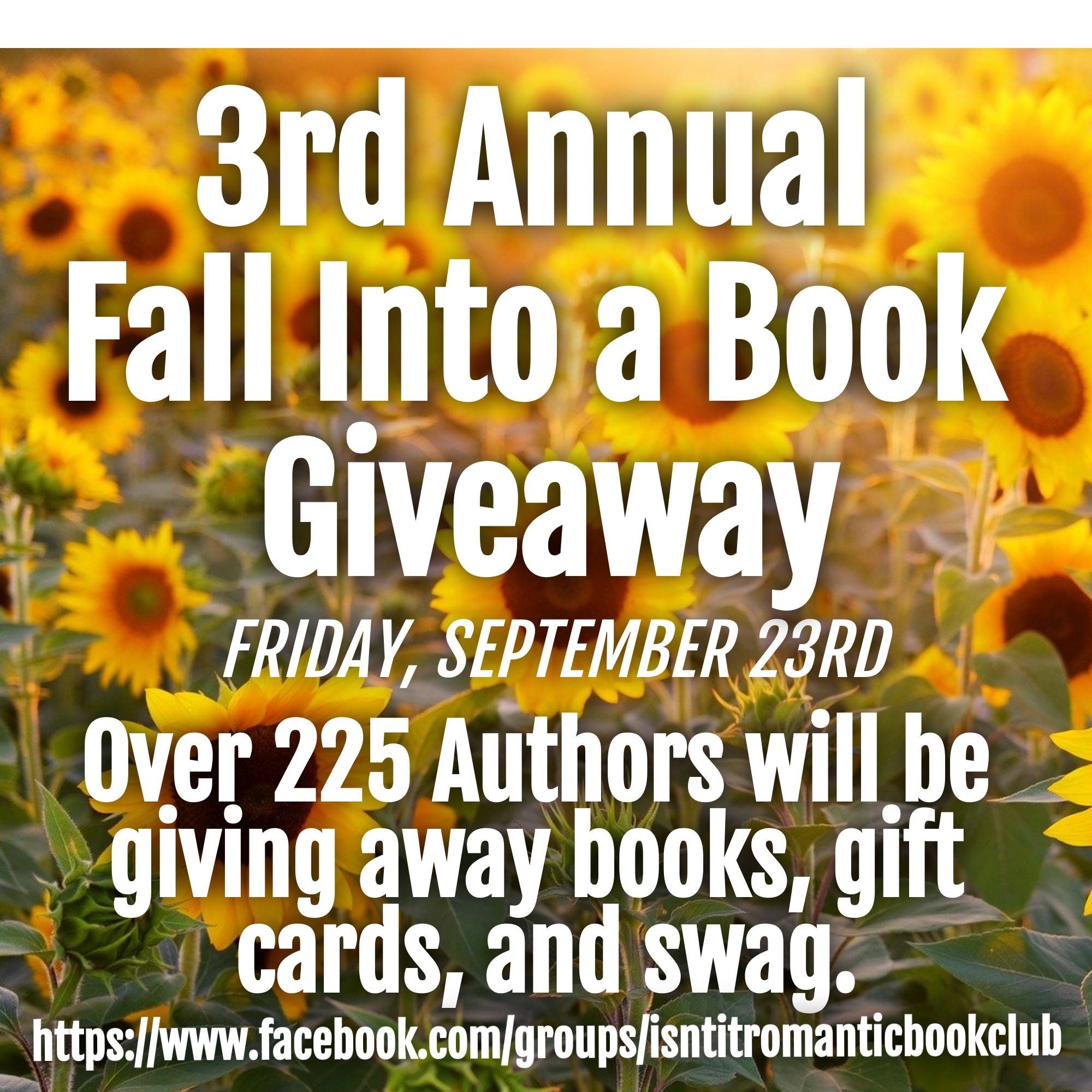 Uncategorized Fall Into A Book Giveaway July 15, 2022 suzannemsabol Leave a comment Here’s an event to keep your eye on. I’ll be there and giving stuff away! Mark your calendars! Share this: Email a link to a friend (Opens in new window) Email TweetMore Share on Reddit (Opens in new window) Reddit Print (Opens in new window) Print Share on TumblrLike this:Like Loading...